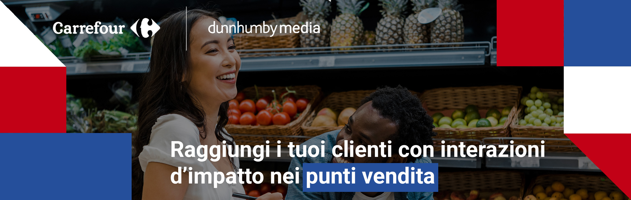 In dunnhumby siamo entusiasti di collaborare con Carrefour Italia per offrire ai fornitori opportunità di attività media rilevanti nei negozi. Con questa partnership, potrete: